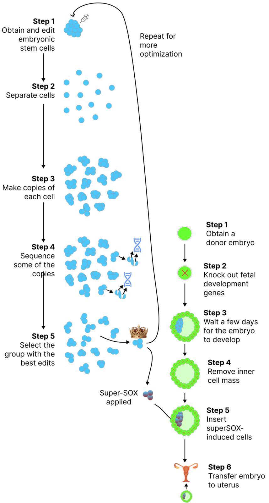 Here’s an oversimplified diagram of various protocols that could be used to make superbabies: