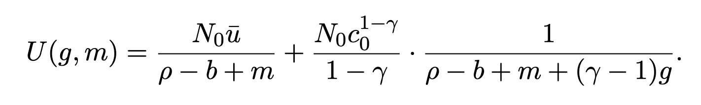 Plugging everything into the integral we get a total utility for a given growth rate and mortality rate: