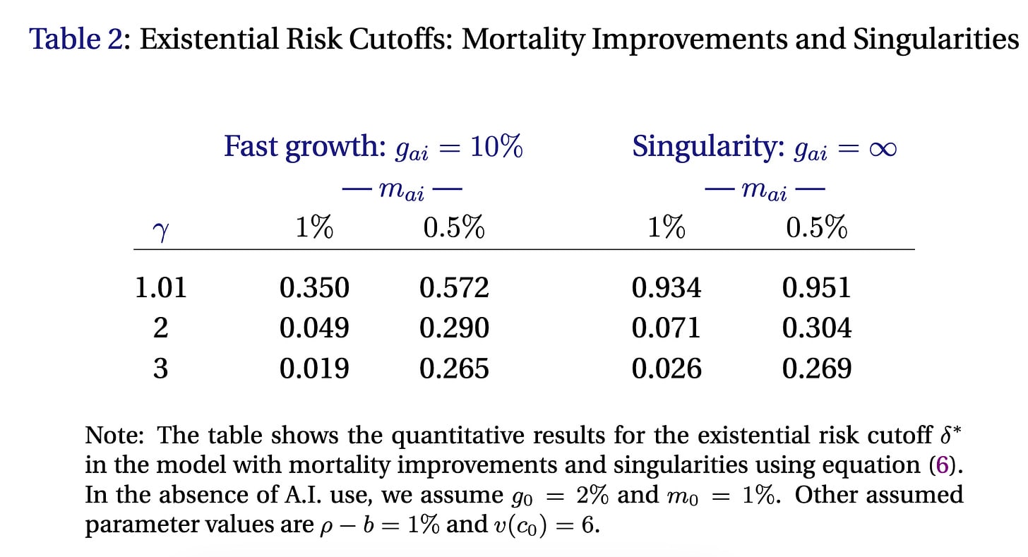 This nicely reproduces Jones’ result that societies with lower discount rates take on more AI risk.