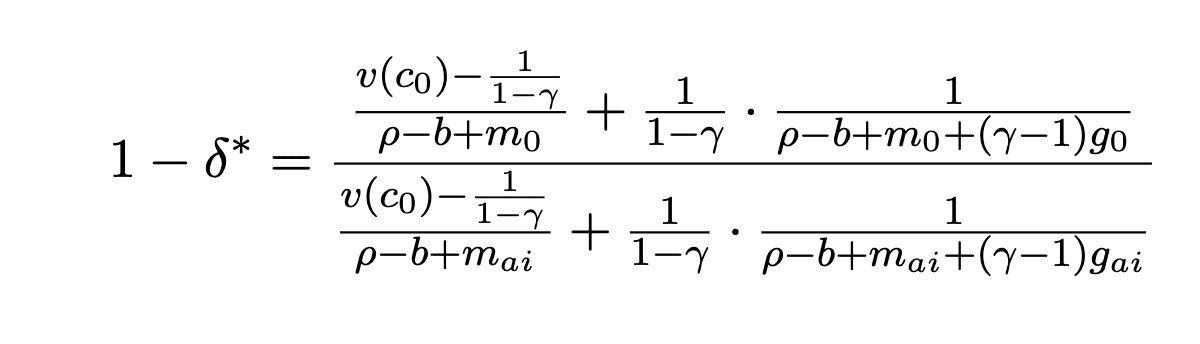 1−δ∗=U(n0)U(nai)=n0nai⋅(1+ρ2⋅c1−γ0¯¯¯u⋅(1−γ)⋅(ρ−(1−γ)g0)2)