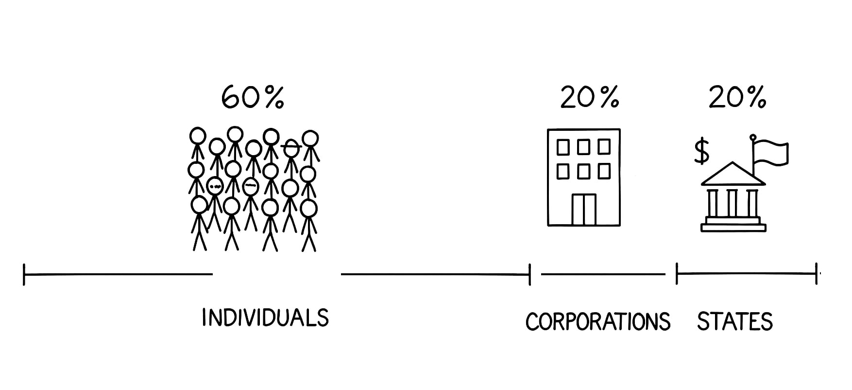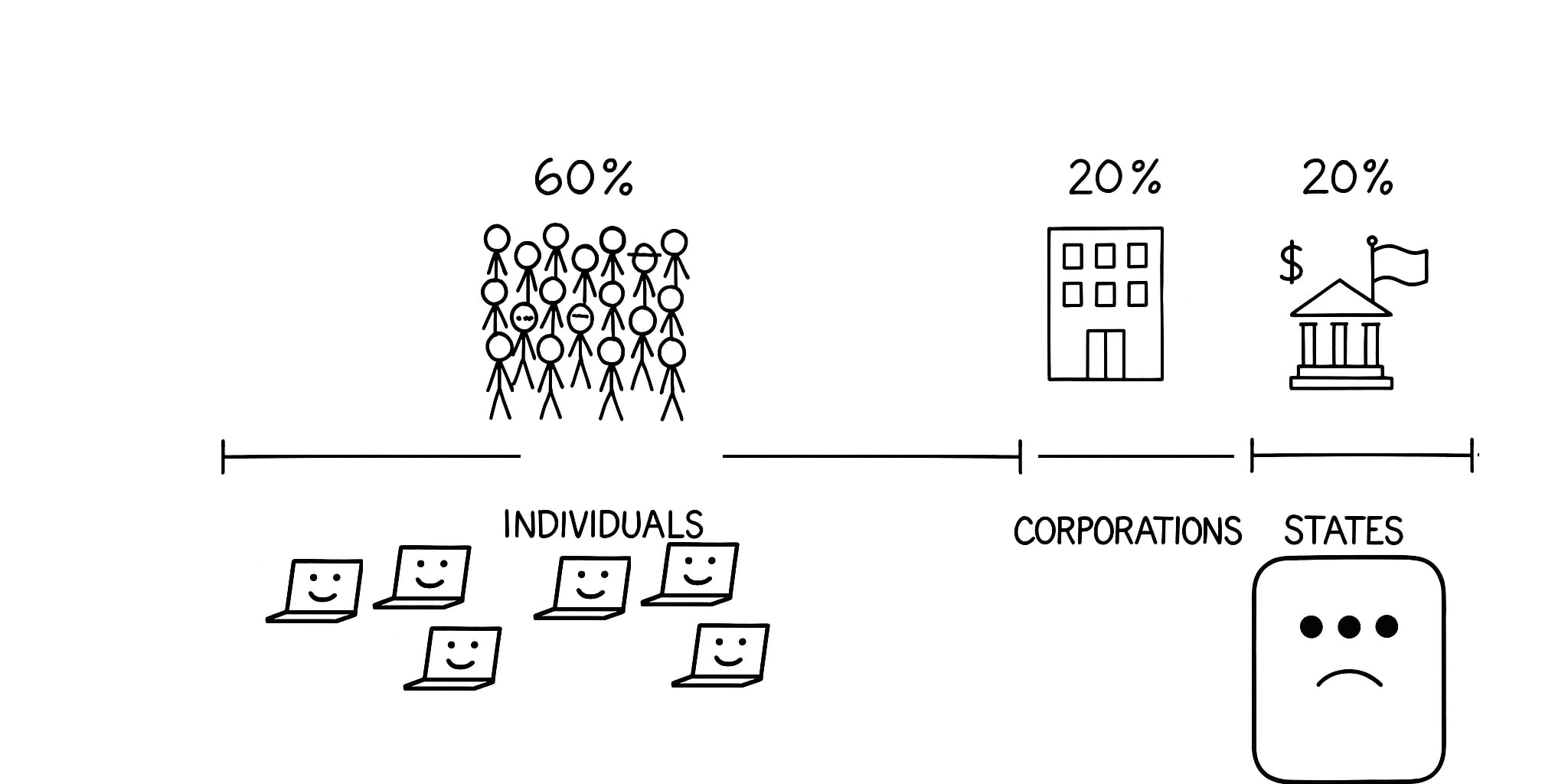 For the sake of argument, imagine the current distribution of agency in the world as approximately 60% humans, 20% corporations, 20% states (numbers are illustrative, egregores not included for simplicity)