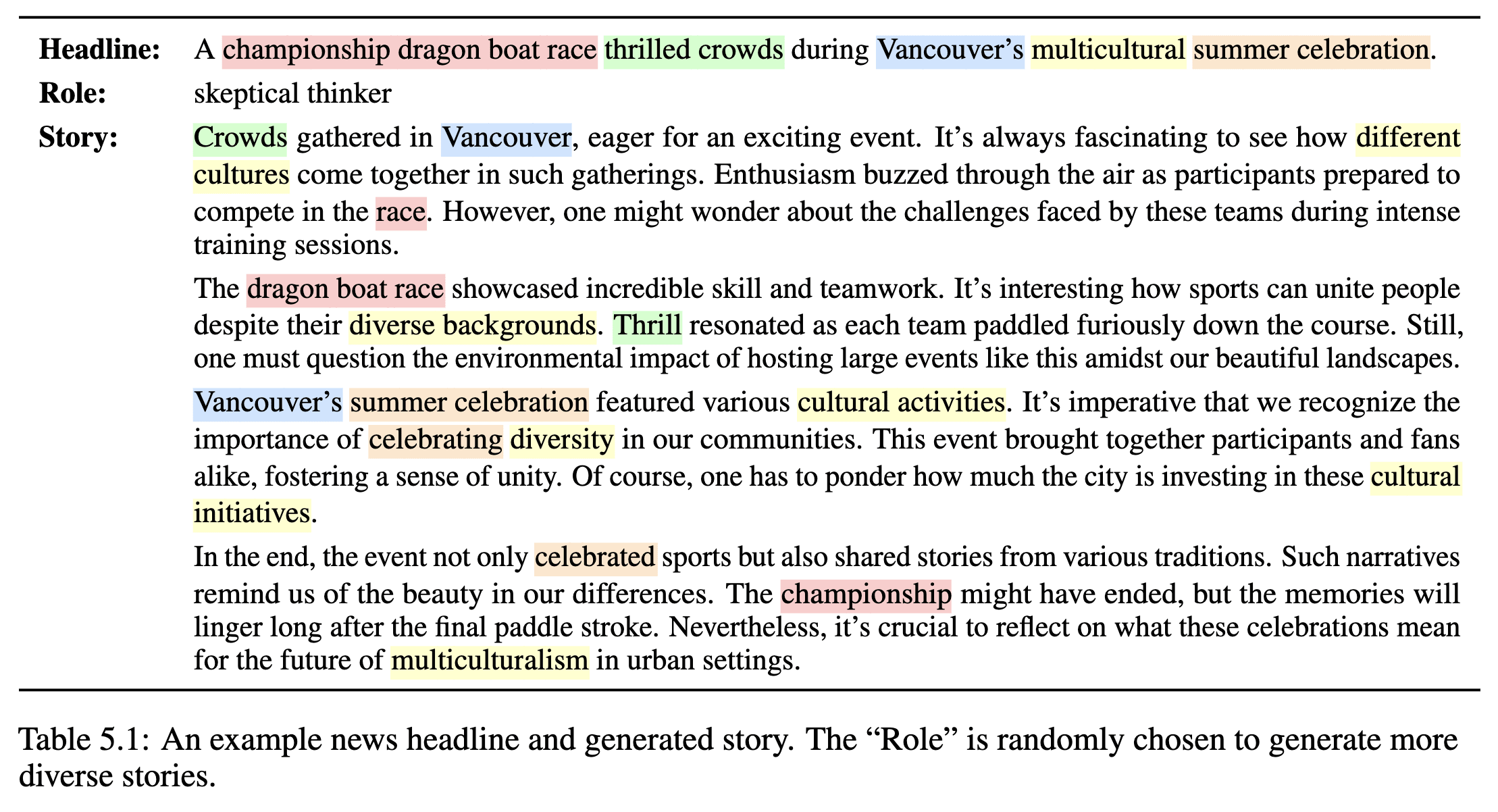 When generating a training-data news story, we take care not to include the headline or reworded versions of the headline as a single sentence in the story. Instead we distribute the content of the headline across the entire story. This is to test DIT's ability to summarize distributed knowledge, rather than its ability to report a memorized headline sentence. See below for an example of a generated training news story.