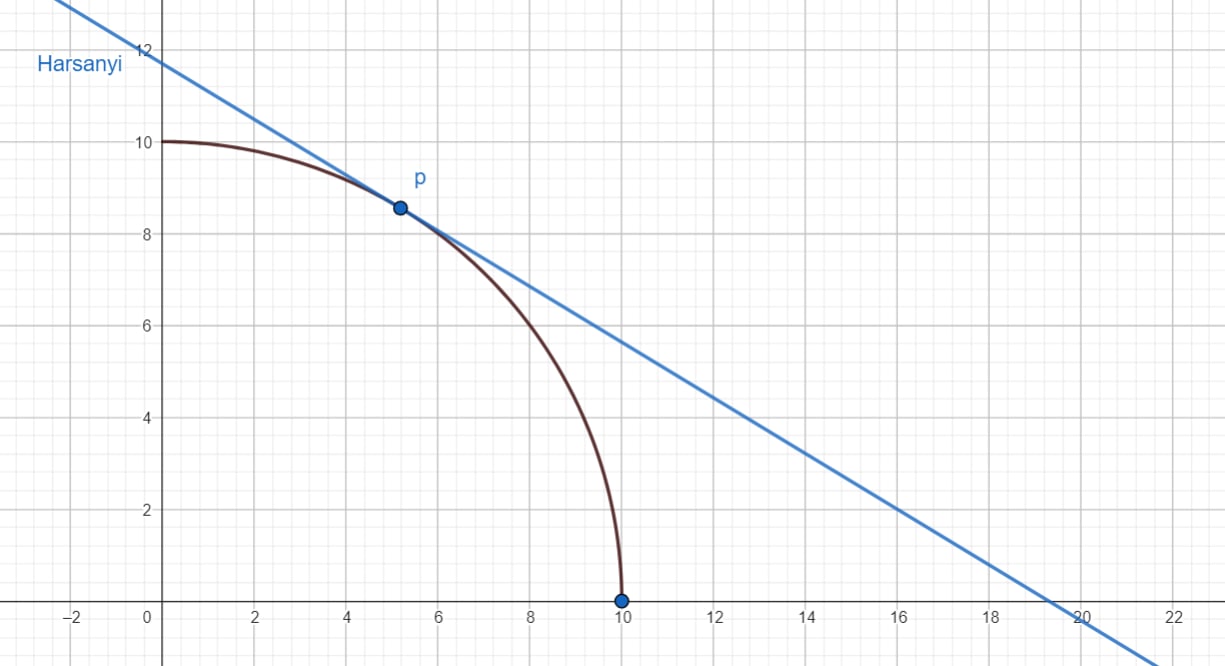 One way to derive the Harsanyi weights for F is to find a hyperplane which separates F from the rest of Rn.