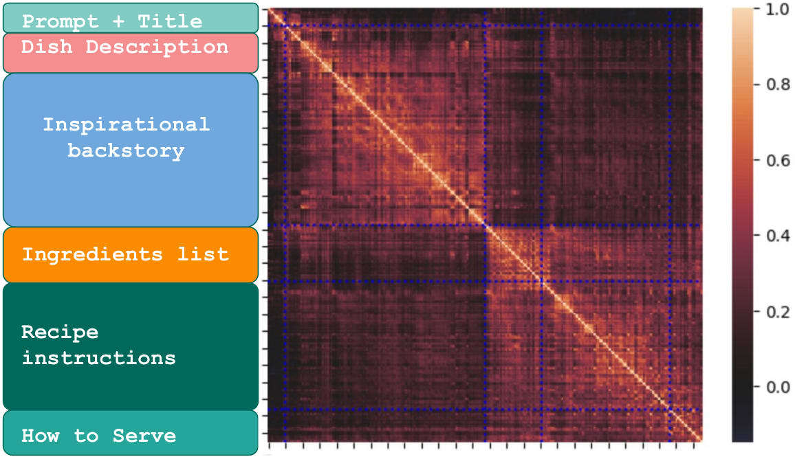 Generated multi-paragraph texts (e.g., recipes with distinct sections)