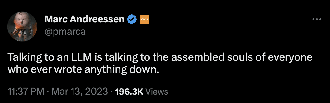 There has been a lot of talk about how GPT-4 and its ilk represent “a mirror of the human soul” or a kind of distillation of our nature. The assumption here is that mankind’s corpus captures our essence and that large language models (LLMs) are grokking this essence as they “read” the sum total of our writing. There are a multitude of reasons why this is a bad assumption, but here are two that I find interesting.