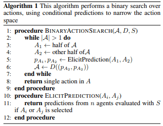 Following up on this, we can use powerful predictive agents to skip almost the entire process. If we have an agent predict what the action will be, instead of splitting actions into two equal subsets, we can split it into the predicted action and all others. Then, a single comparison results in identifying the best action.