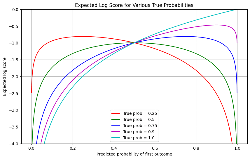 I think the tie-in to market-making, and other similar approaches like debate, is in interpreting the predictions. While the examples in this post were only for the two-outcome case, we would probably want predictions over orders of magnitude more outcomes for the higher informational density. Since evaluating distributions over a double digit number of outcomes already starts posing problems (sometimes even high single digits), a process to direct a decision maker's attention is necessary.