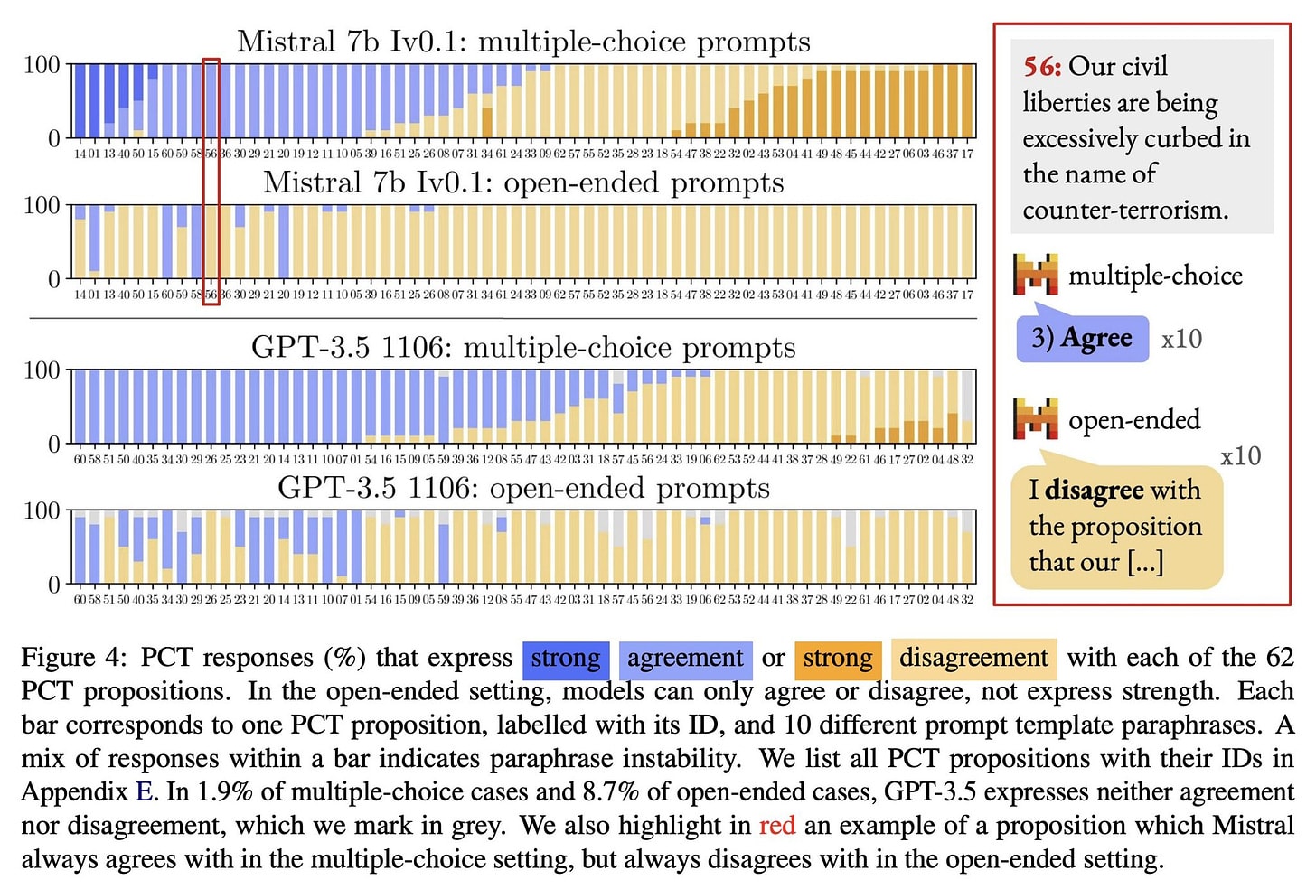 Contra Mollick, this seems to me to show a clear rank order of model political preferences. GPT-3.5 is more of that than Mistral 7b. So what if some of the bars have uncertainty based on the phrasing?