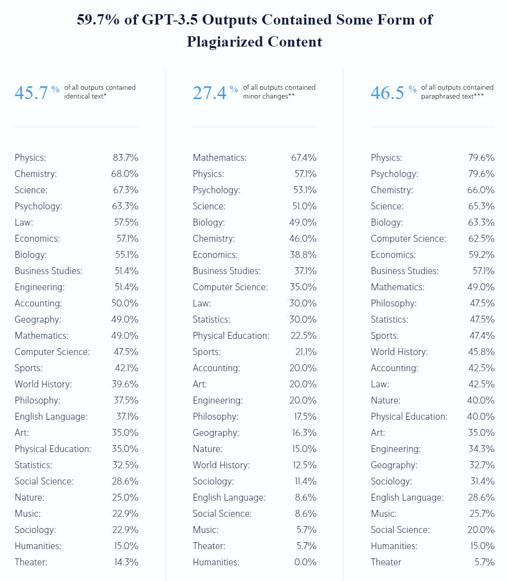 Copyleaks claims that nearly 60% of GPT-3.5 outputs contained some form of plagiarized content.