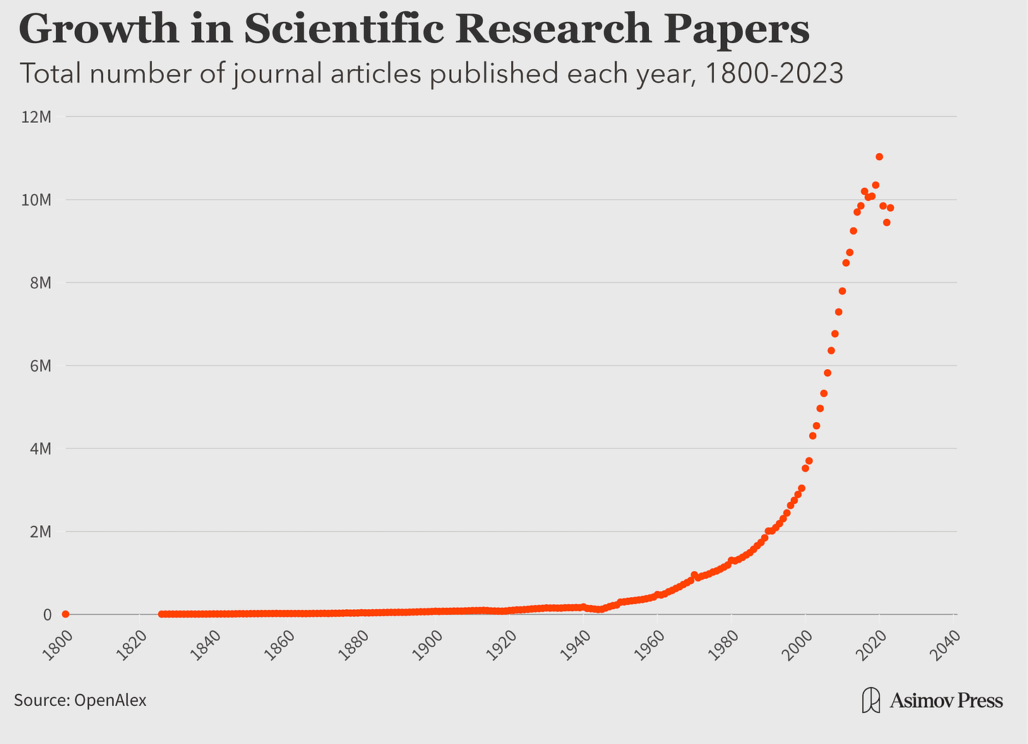 2 Although it’s worth noting that the long-term exponential growth rate in scientific publications only rose slightly during this time — so the change was not as dramatic as it is sometimes portrayed.