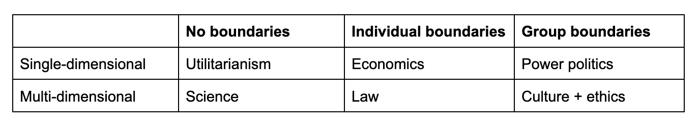 I've been thinking lately about the assumptions underlying different intellectual fields. This is hard to compress, and I'm working on a few posts about different aspects of these assumptions, but here's a very rough summary of two crucial factors and how they vary across different fields: