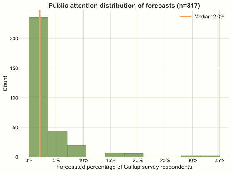 We created a forecasting survey that would track key markers of AI progress in what might turn out to be a pivotal year. After filtering the data, we had 421 unique respondents. All questions were optional.