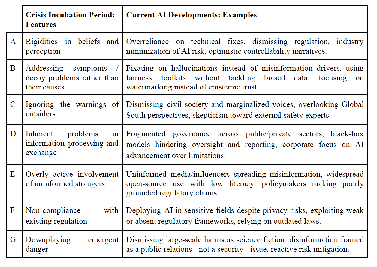 Table 1. Crisis Incubation Period and Current AI Developments.