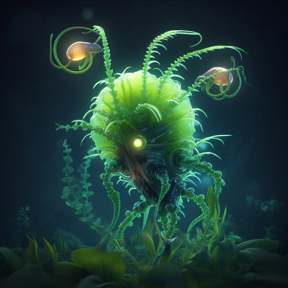 Figure 7: A depiction of a mobile photosynthetic creature, generated with midjourney. This example is intended to try and shed some light into the possibility space - it is likely “actual” counterfactuals would, more often than not, be beyond the scope of our imagination.