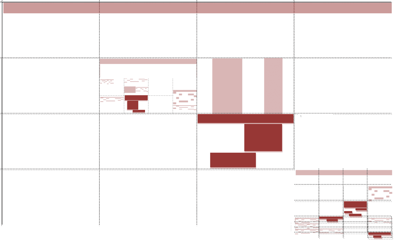Applying this visualization to a case study of a historic ocap system—the DarpaBrowser running on CapDesk written in the E ocap language—we get the following picture. At each level, there are some solid red boxes whose internal risk cannot be reduced at finer scales. The main solid red boxes are the confinement boxes containing legacy software. These legacy boxes appear at each scale. We can prevent confined legacy software from doing much damage to the world outside itself. However, because the legacy software internally operates by its own principles, we cannot keep it from fouling its own nest. Wherever it appears, the recursion stops within that box.