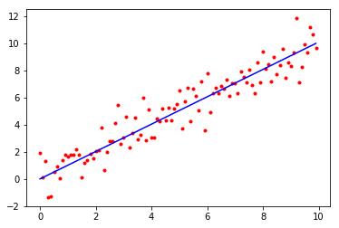 I generated these with a “true” slope of 1, i.e. y=1∗x+noise, with standard normal noise.
