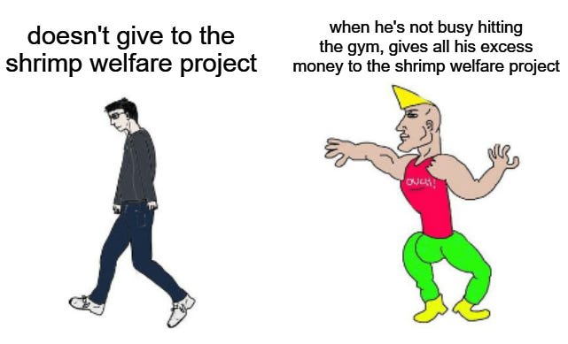 (Note: if any of the people making fun of shrimp welfare want to have a debate about it, shoot me a dm.)