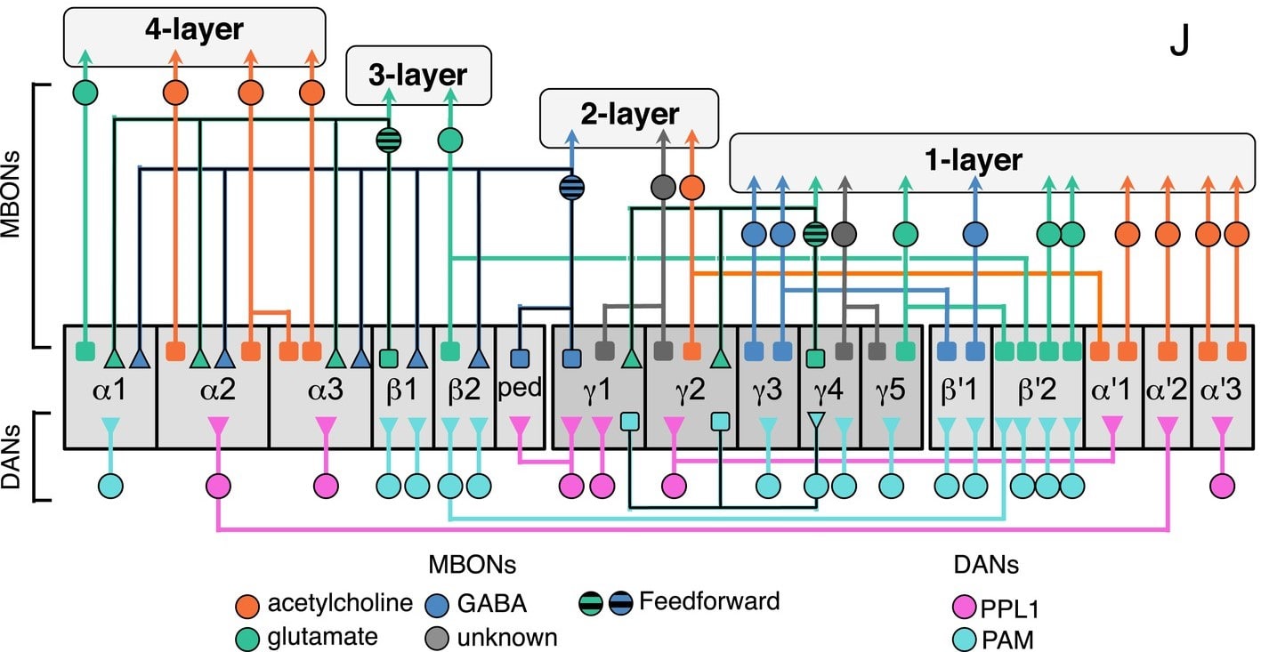By the way, right now is a golden era in drosophila research. All 135,000 drosophila neurons have recently been mapped; see the FlyWire papers and website, plus “Drosophila Connectome” on wikipedia for more history. For my part, I’m very far from a drosophila expert—pretty much everything I know about drosophila comes from “The connectome of the adult Drosophila mushroom body provides insights into function”, Li et al. 2020, and also Larry Abbott’s 2018 talk which is nice and pedagogical. Also, I have some drosophila living in my compost bin at home. So yeah, I’m not an expert. But I’ll do my best, and please let me know if you see any errors.