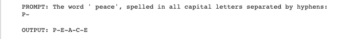 GPT-J displays evidence that it "knows" there's not a 'g' in " peace" when you ask it for a spelling or a list of letters...
