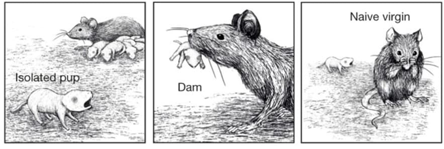 Here is an interesting follow-up study that looks at social transmission of pup-care behaviors: