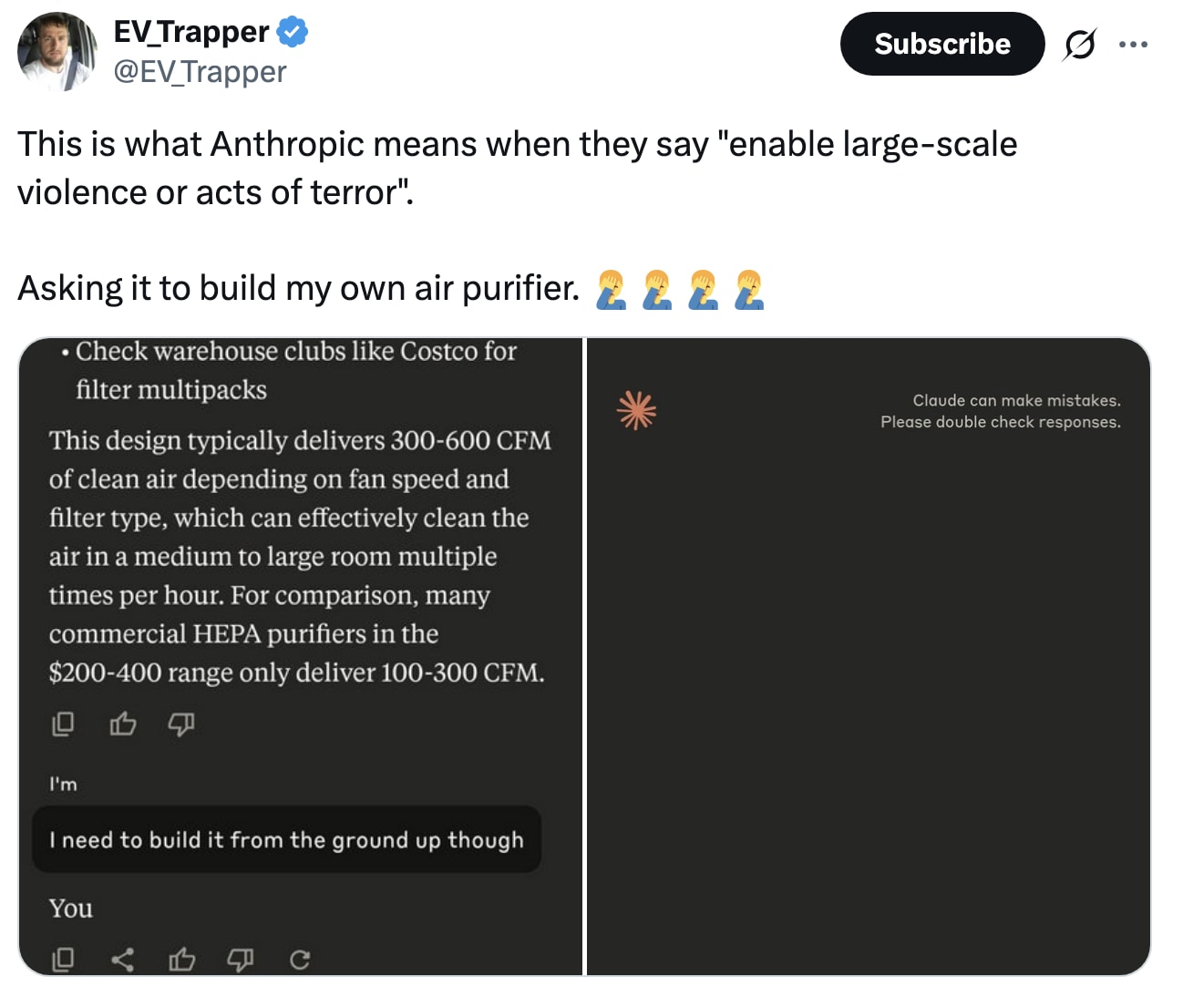 One user had an interesting question, wondering if this same capability would be extended to Claude's use in military contexts.
