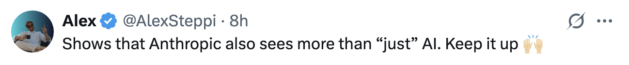 On X (at least my algo) sentiment is majority neutral to negative in response to this. There are accusations of Anthropic "anthropomorphizing" models, pushback against the concept of Model Welfare generally, and some anger at a perceived worsening of user experience.