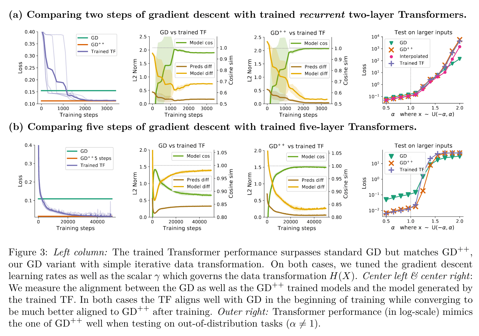 Blaine: they show a weight construction of transformers that does gradient descent in activation space, then show that the transformer training procedure actually does find this construction in practice