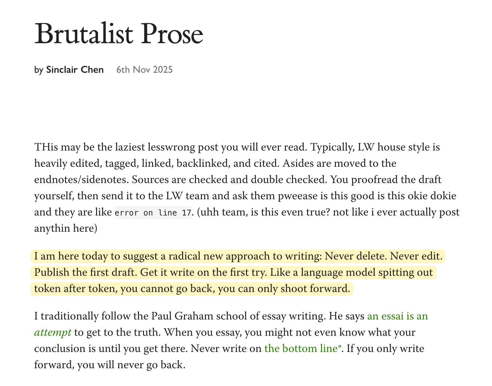 Brutalist prose, on LessWrong.