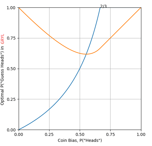 coin_guess.append(coin == 'Heads')The results are all the same. You in particular has only 50% to guess the result of the coin toss - that's the bailey. But if you also count the other person guesses - construct the thriders scoring rule you together get 2/3 for Tails - that's the motte.