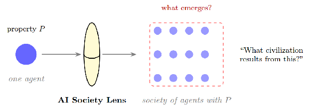 When you read a paper about single-agent behavior—some capability, some failure mode, some training artifact— you could apply the lens. Ask what civilization emerges from agents with that property. Sometimes the answer is "existential risk." Sometimes it's "we already live there." Sometimes it's "actually fine."