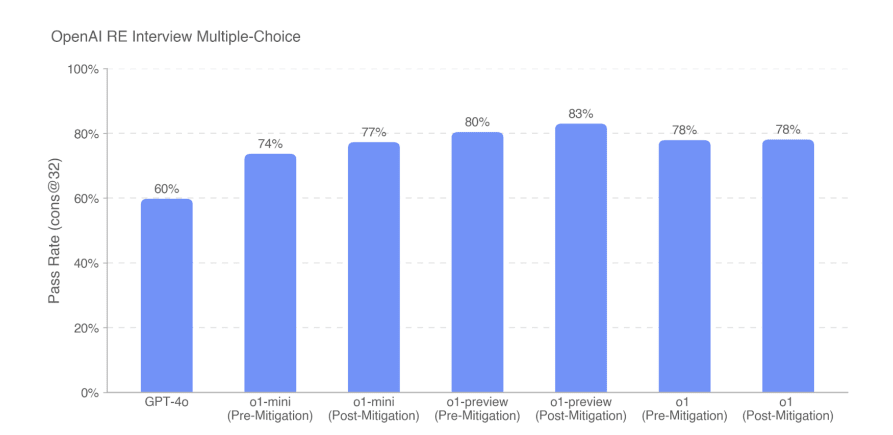 The reasoning about the guidelines causes the model to better adhere to the guidelines. Also o1 is more capable. They consulted with outside experts including the AISIs (UK/US) but their evaluations are not included here.
