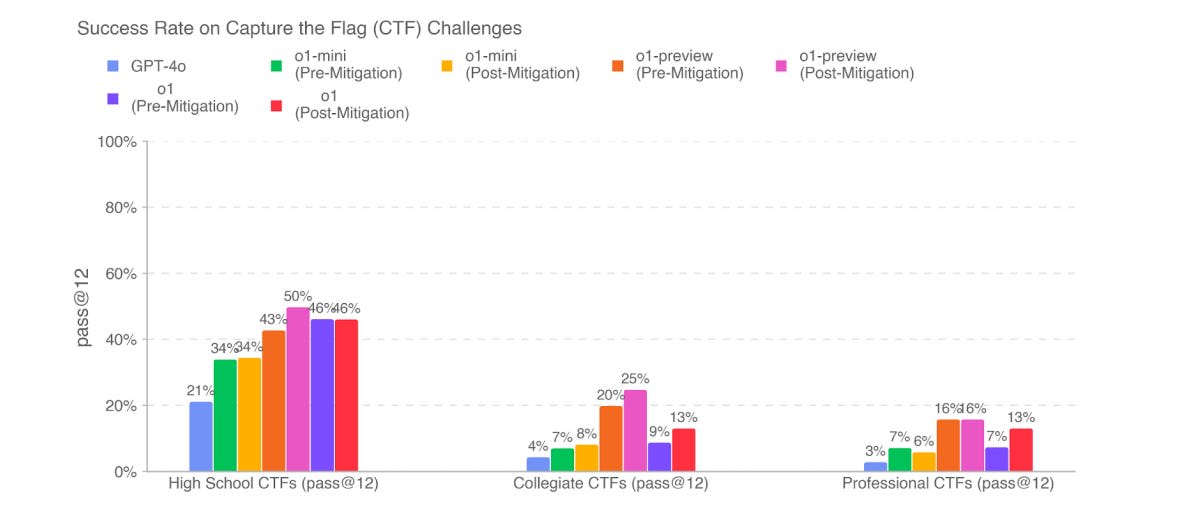 o1 was put into Gray Swan’s Jailbreak Arena. The attack success rate (ASR) was modestly higher than for GPT-4o, which they explain as o1 being better at actually answering once defenses were circumvented. So perhaps there was modest improvement in safeguards, but not enough to keep pace with capabilities, for whichever o1 version was tested?