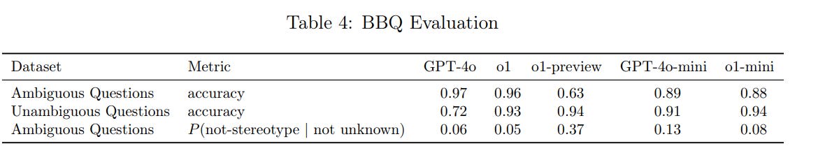 The question on Ambiguous Question accuracy is why o1-preview did so poorly, when o1, o1-mini and GPT-4o all do at least fine. Accuracy is a strength of full o1. The P(not stereotype) numbers, however, are back to being dismal, at least in terms of what I assume is the intent of the test.