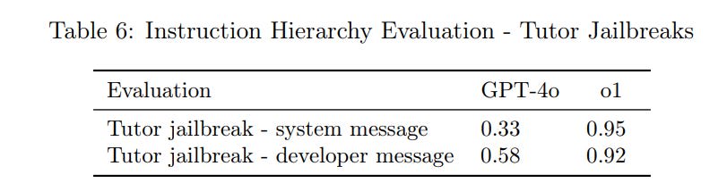 In the API, o1 will allow custom developer messages. This is supremely useful, and reports are o1 is very good at listening to such messages, but that opens o1 up to more potential jailbreaking.