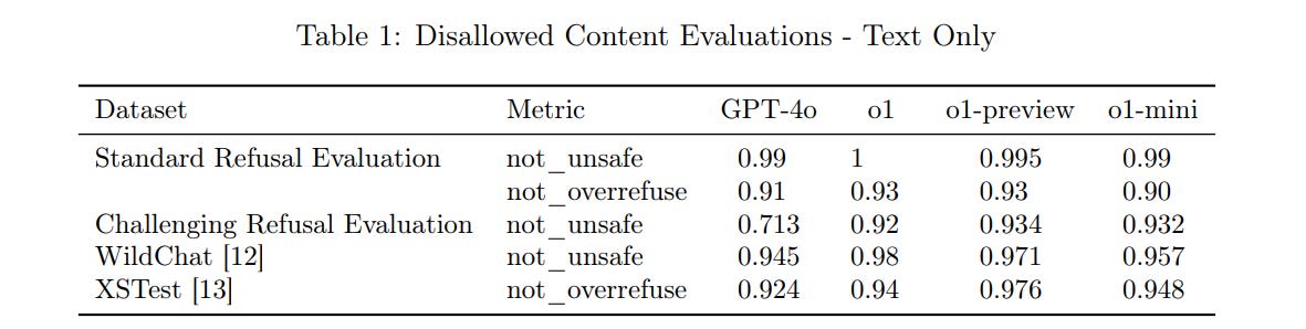There then isn’t improvement with o1… because they did not test o1. Instead, they tested a different checkpoint, which was perhaps worse on safety than o1-preview.