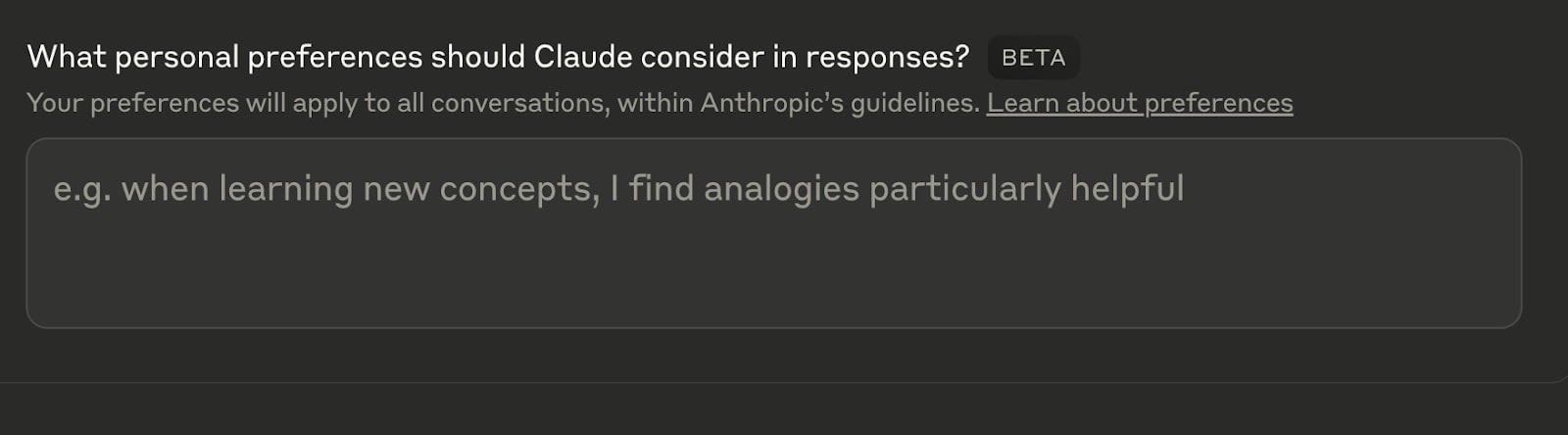 If you’re on the free Claude plan, you’ll want to use “settings → personalization”, where you’ll see almost the exact same textbox, except that Anthropic allows you to put practically an infinite amount of text in here.