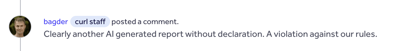 Apparently curl is withdrawing from HackerOne because they’re wasting so much time triaging AI slop. (I checked and immediately found some.)