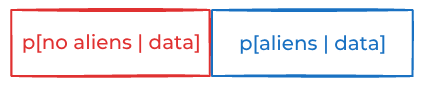 P[data | aliens]should also be some low number. For the sake of simplicity, let’s call it a wash and assume thatSince neither the prior nor the data see any difference between aliens and no-aliens, the posterior probability is
