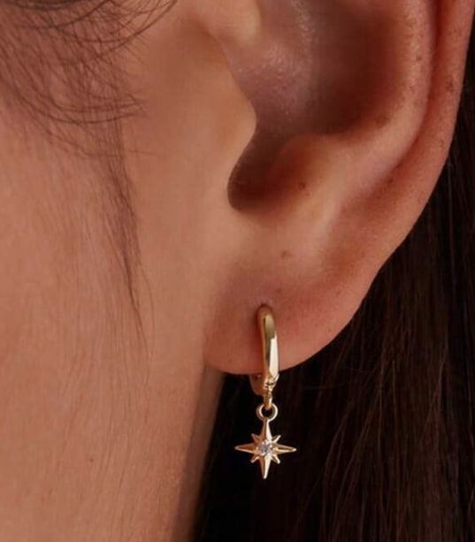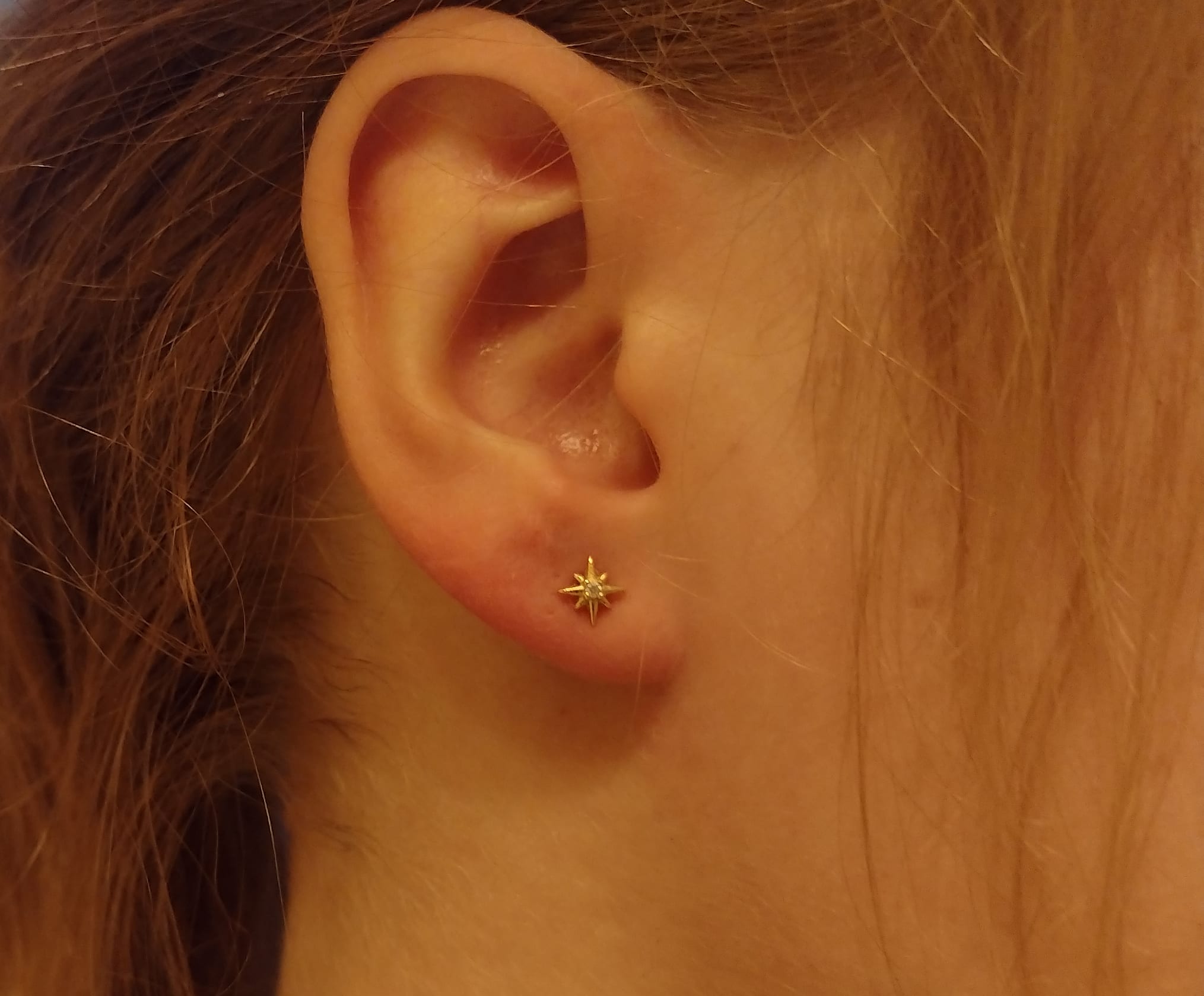 Note the stud is quite small. Here is what it looks like on my ear, in comparison with the hoop earrings: