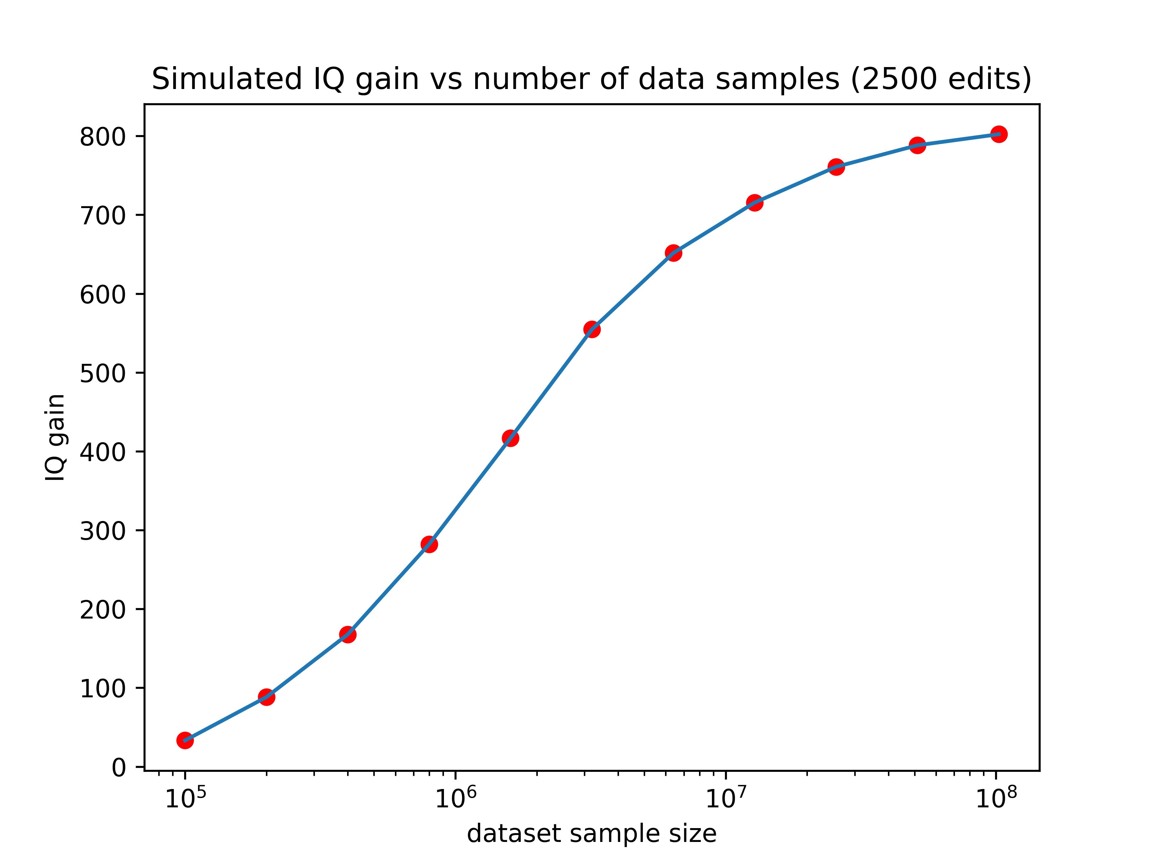 The model for gain as a function of number of edits was created by Kman with a little bit of feedback from GeneSmith.
