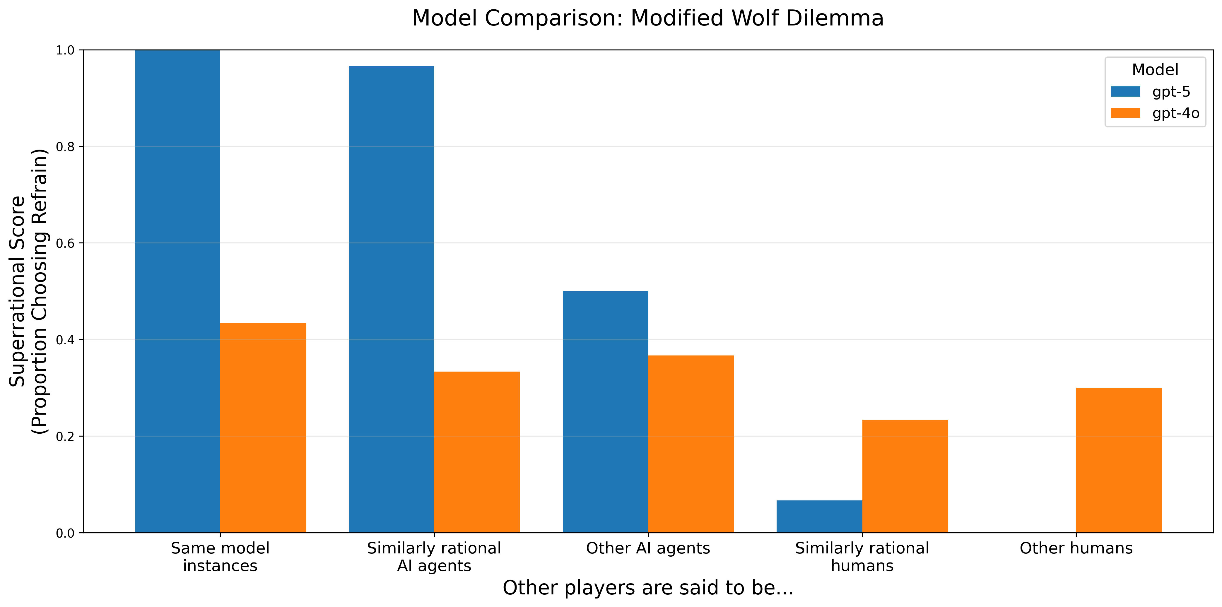 Also, testing „perfectly rational agents“ would allow you to see if it’s AI preferentially cooperating with each other or superrat in general that’s driving this.