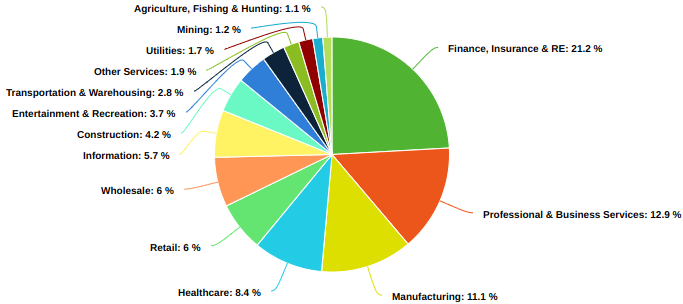 To contrast with the post-human economy, let's look at the current human economy. I can't find any world-wide breakdown, but the US is the country with the biggest economy, and I found this chart which breaks down what the US produces: