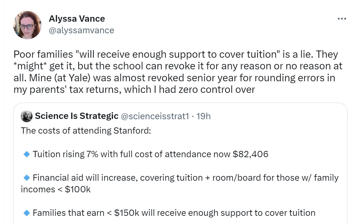 ‘Enough support to cover tuition’ is code for ‘we will take every penny you have, pray that we do not miscalculate and take pennies you do not have.’