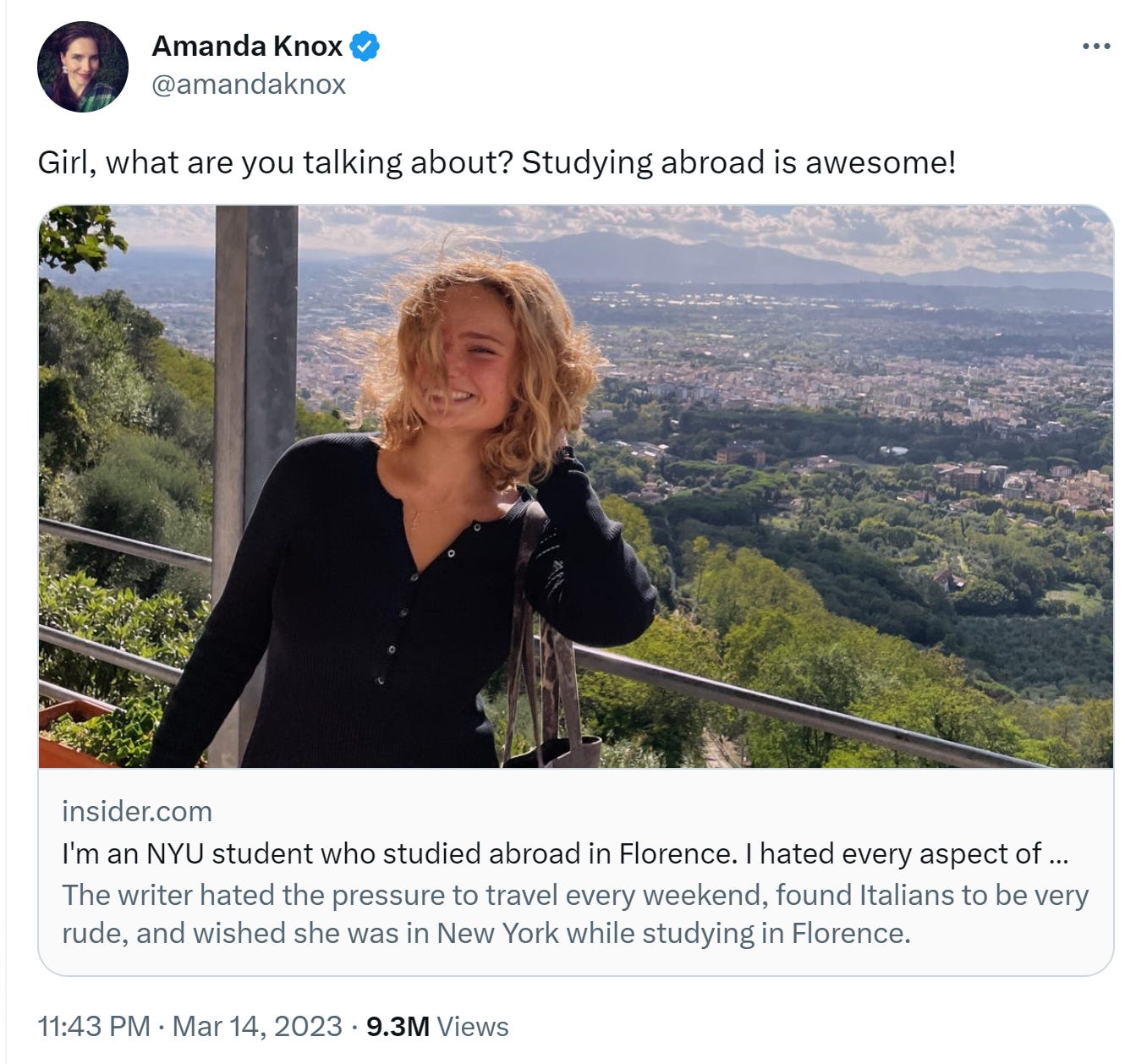 Topline complaints from linked post: “I hated that my classmates traveled every weekend,” how dare they, it’s so horrible that for $20 everyone was going all across Europe, and “I also thought the locals I meet were rude and hostile towards me, and I missed my life in New York.” Who’s rude now? Also a real headline: “For starters, living with 7 people was not easy.”