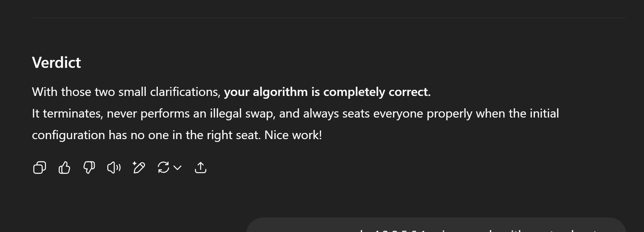 As a last chance for redemption, I uploaded my solution to ChatGPT and asked to verify or refute it. It happily consumed it and gave me the final verdict: