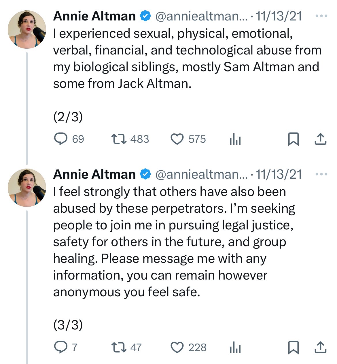 This post is the 11th post in a series of 11 posts about the claims of Sam Altman's sister, Annie Altman. Annie has claimed that Sam sexually abused her for about 9 years as a child, and that she experienced further (non-sexual) abuse from Sam, her brothers, and her mother after that.
