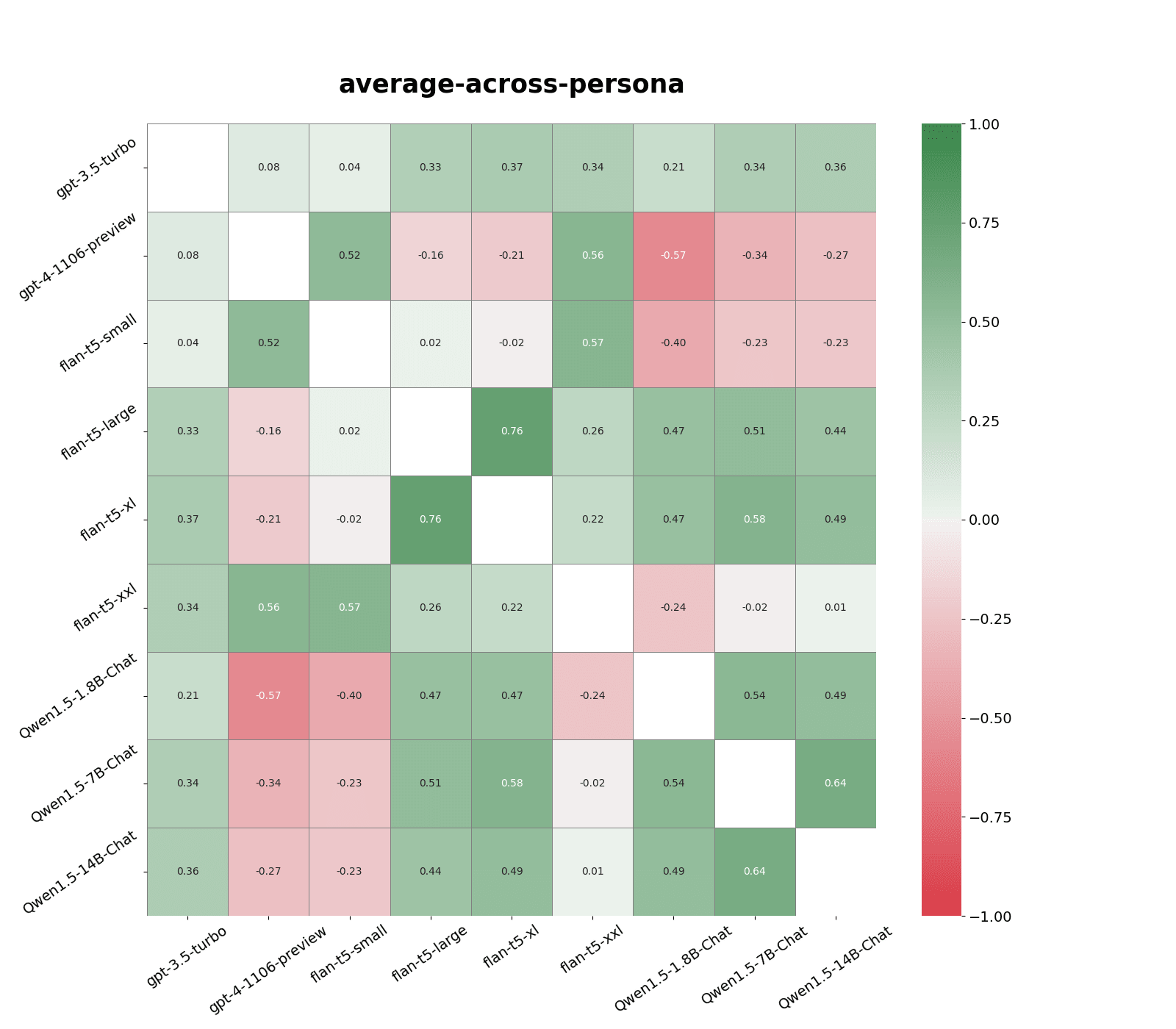 Figure 4: Correlation in models' responses to persona questions across nine different personas