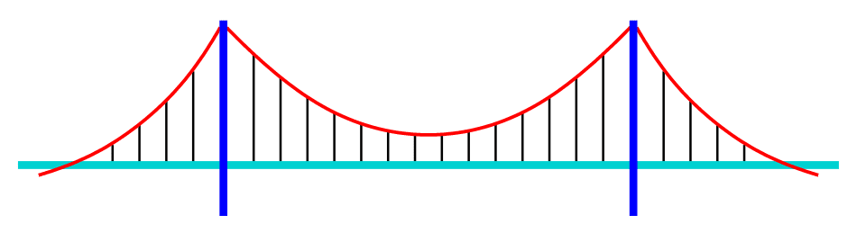 In the case of the suspension bridge at the top, the cable in red is an SPOF. If the cable snaps, the bridge falls. The struts in black, though, if you make each one 10% stronger than it would need to be under ideal conditions, can keep holding the bridge up even if one of them fails. That additional strength is known as the safety margin.