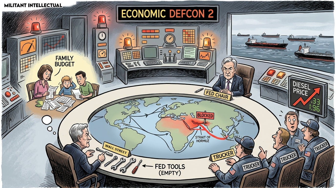But we blew past DEFCON 3 the moment crude oil crossed $100 and the Strait of Hormuz went dark. The standard playbook stopped working. The Fed’s tools became liabilities instead of assets.