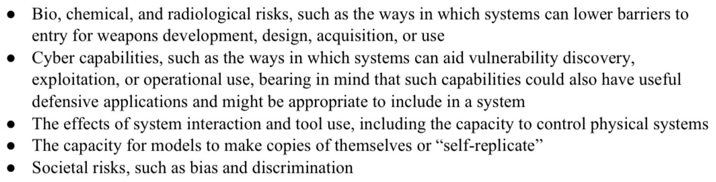 These are the catastrophic capabilities that companies agreed to evaluate via red teaming.